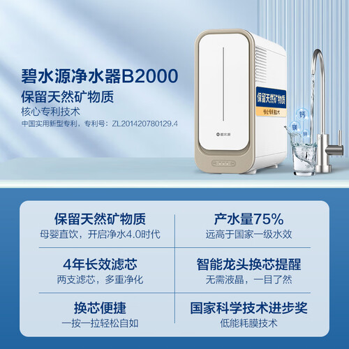 纳滤技术加持,去除有害物质同时保留自然矿物质,让您一整天都活力满满。净水回收率高达75%,节能省水,轻松畅饮没后顾之忧。