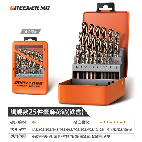 绿林麻花钻头套装,采用深U型螺旋槽设计,在高速作业时,能够提升废屑排出量;经过硬度处理,锋利耐磨,使用寿命更长。