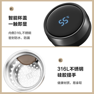 顶部设有温度显示,让你随时掌控温度,饮水更加安全放心。内盖采用316L材质,能放心的与水面接触,不会影响水质。