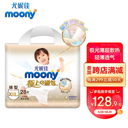 采用了凹槽导流设计,可以快速导流尿液,减少尿液对肌肤的刺激。融合了日本先进的纤维织造工艺,触感柔软,不磨宝宝肌肤。