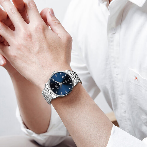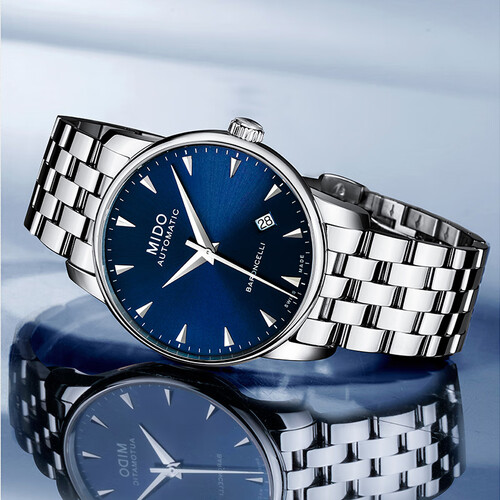 太阳纹午夜蓝色表盘,运用了丝光打磨,更显精工细腻的质感,加上钻石切割的秒针,和太妃指针的时针和分针,更显精致华美的品质。