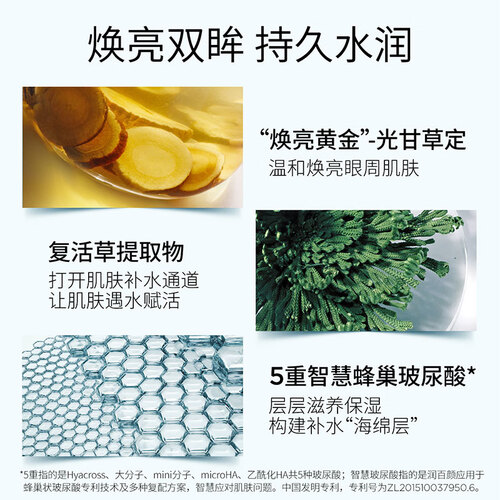添加咖啡因成分,打造出水嫩亮泽眼肌,让双眸更具神采。富含复配胜肽成分,舒缓肌底修护受损屏障,缓解脸部细纹干纹。