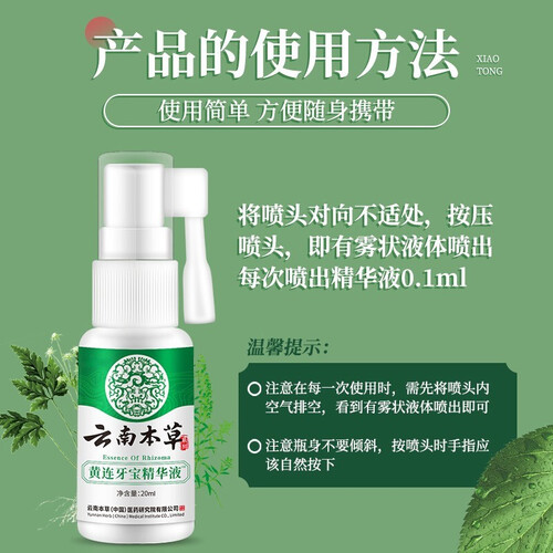 该款口喷可有效缓解牙齿肿痛,温和护理;清新口气,更好的净化口腔。