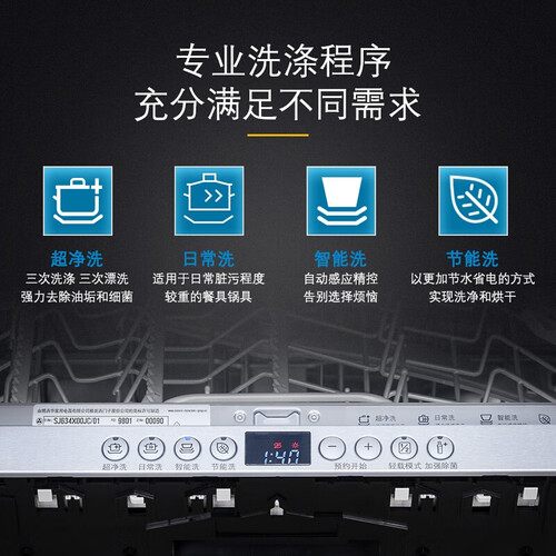 运用360度喷淋洗涤,清洗强劲不留油污,洁净效果十分出色。采用72度高温清洗碗碟,有效去除顽固油污,让餐具干净如新。