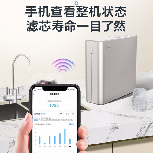 5层深度过滤,轻松滤除水中有害物质,让您喝上健康好水。内置4L大容量储水罐,用水高峰也无惧水量问题,畅饮畅用。
