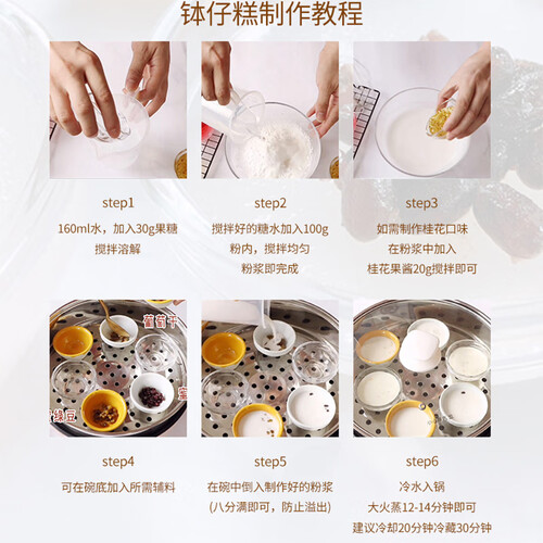 提取木薯中的植物淀粉,粉质洁白细腻,制作出的钵仔糕Q弹爽滑,色泽通透,香润可口。