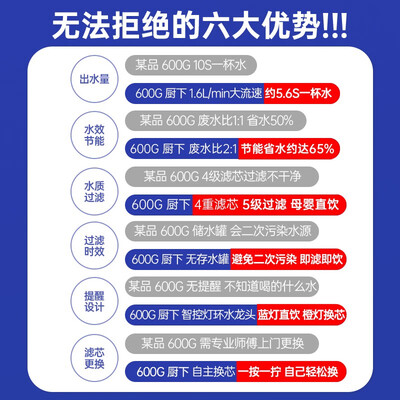 具有大流量设计,制水速度快,满足全家用水需求,减少等待时间。RO反渗透技术,轻松过滤水中看不见的有害物质,呵护饮水健康。