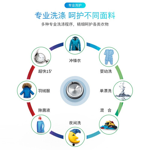 高温筒自洁设计,能自动去除内部污垢,打造健康洗涤空间。搭配深色洗程序,提供低温洗涤效果,不串色、不掉色。