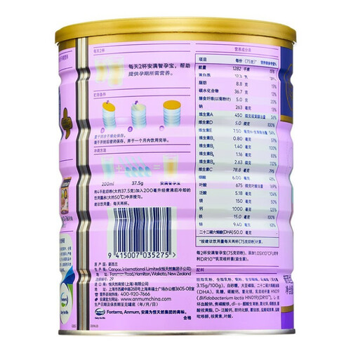 新西兰进口的孕妇配方奶粉,每天两杯即可满足孕期的叶酸需求。口味清淡,奶香纯正,令人回味无穷。