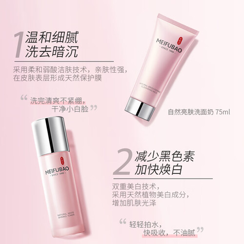 温和补水,快速润泽肌肤的护肤套装,添加了自然美白成分,能从源头减少色素沉积,改善面部黑黄,令肌肤恢复白皙光彩。