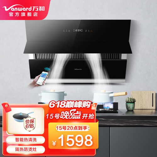 搭载先进的热清洗技术,高温溶解顽固污渍,维持长久强劲吸力。可以手机连接万和APP,实时查看远程操控,减少厨房异味。