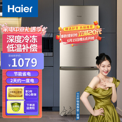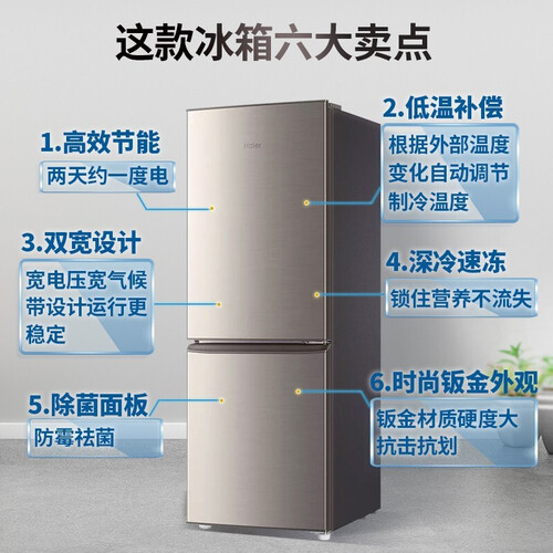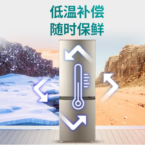 选用炫金拉丝面板,显得时尚优雅,有效提升家居格调。具有低温补偿功能,外部温度过低时自动匹配适宜制冷温度,保持运行稳定。