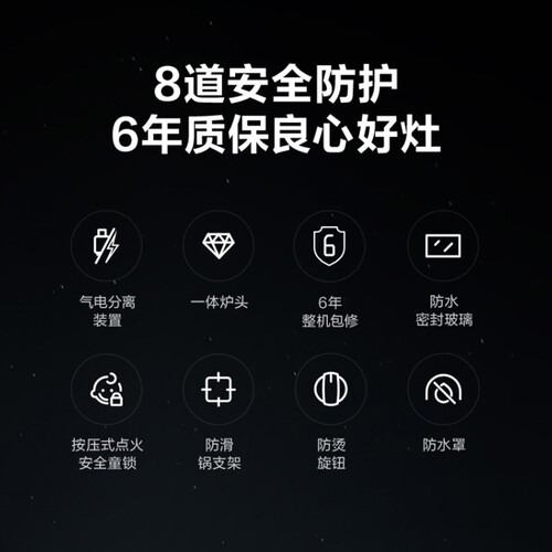 采用脉冲点火技术,一拧轻松打火,使用更加省心省力;钢化玻璃材质的面板,结合防爆工艺处理,使用更加安全,光滑好清洁。