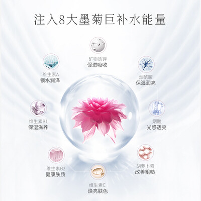 蕴含法国蜡菊精粹,可深入肌肤扫除暗沉,增添肌肤活力感。搭配甘油、透明质酸钠等成分,帮助肌肤补水保湿。