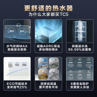 内置的三层净化拦截,可轻松过滤微小杂质抑制有害物质,让你畅享健康暖浴。六重保护功能,为家人沐浴安全带来更好的保护。