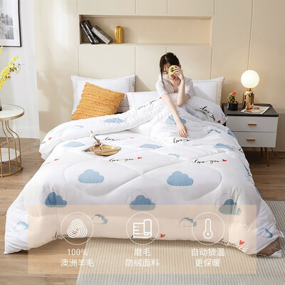 羊毛和中空纤维混合填充的羊毛被,触感柔软蓬松且保暖性佳,可锁住人体热量,让您一整晚睡眠都能保持舒适干爽的体感。