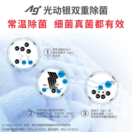 光动银双重除菌技术,在洗净衣物的同时又能够有效祛除各种有害细菌。让宝宝衣物更加卫生洁净,呵护娇嫩的肌肤。