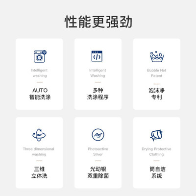 带有多种专业洗衣程序,满足多样洗衣需求,呵护洗衣纤维。采用BLDC变频电机,有效降低运行时的噪音,做到安静洗衣。