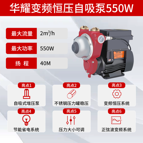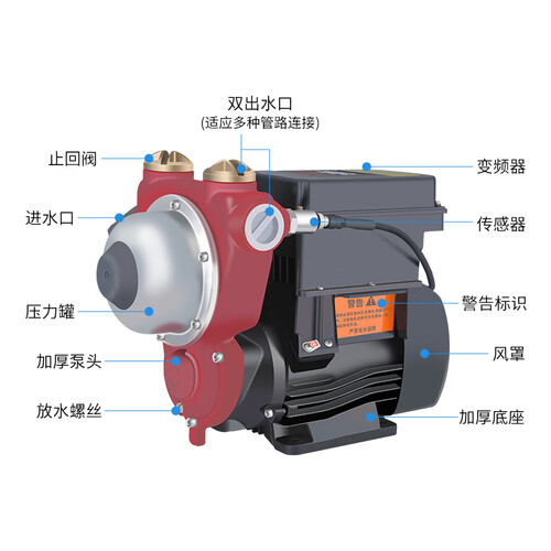 恒压增压泵,可为多路同时供水,水压平均,家用舒适。搭配变频科技,节省能源消耗,不会过度浪费电力。
