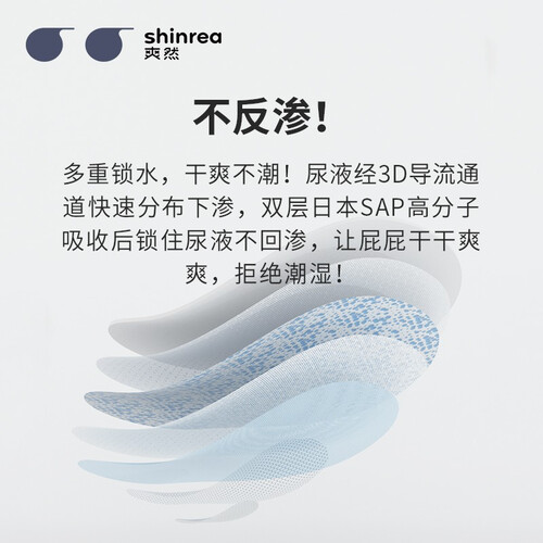 采用3D表层,布满呼吸环绕透气孔,能够迅速带走湿气。添加导流通道,均匀分散尿液下渗,减少回渗几率。