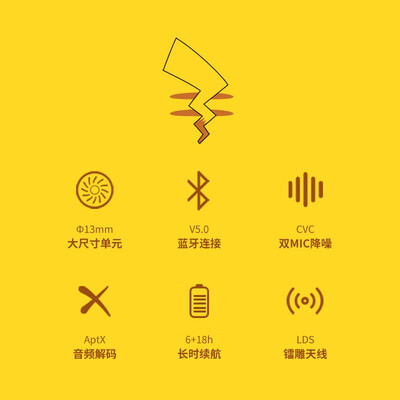 皮卡丘主题外观的蓝牙耳机,萌萌的外观惹人喜爱,可爱值满分,不管是自用还是买来送人都不错。半入耳式佩戴,减少不适感。