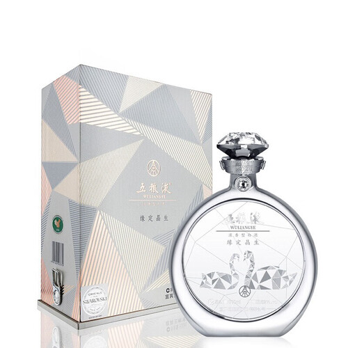 施华洛世奇品牌大师设计,外观优雅,呈现钻戒造型,展现珍贵轻奢质感。五粮液缘定晶生,是表达爱情不错的方式。
