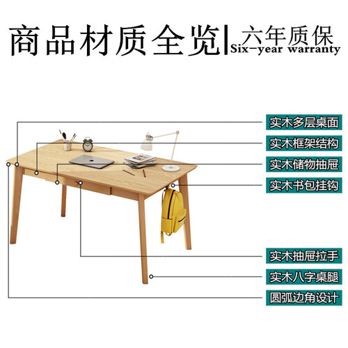 精选榉木材质打造,木质坚韧,纹理清晰,手感温润顺滑,方便您使用,宽大桌面加持,书籍电脑均可放置,配备小抽屉,便于收纳。