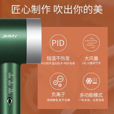 PID智能温控,牢牢把握吹发温度,快速干发前提下,又很好的避免高温损伤发质。内置负离子芯片,滋养强韧发根,秀发充满光泽。