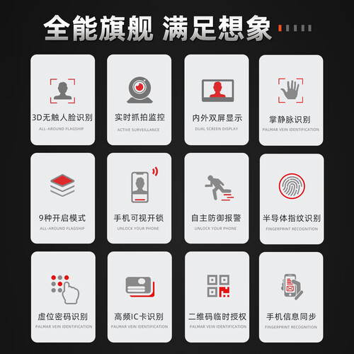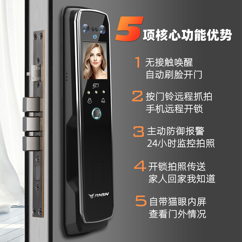 具备3D人脸识别功能,搭载无障碍自动识别模式,0.8米自动刷脸开门,赋予您更贴心的解锁体验,方便家中的老人小孩使用。