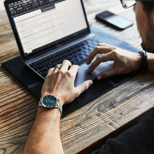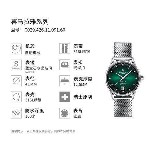 此款手表搭配高雅墨绿色表盘,经典大气,体现男性稳重气质;运用清晰表镜处理技术,读时清楚,使用便捷舒心。