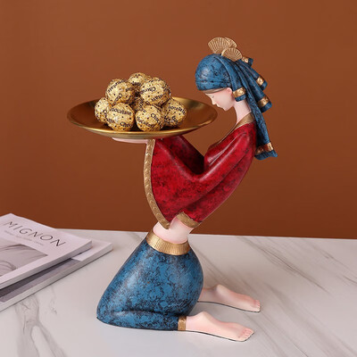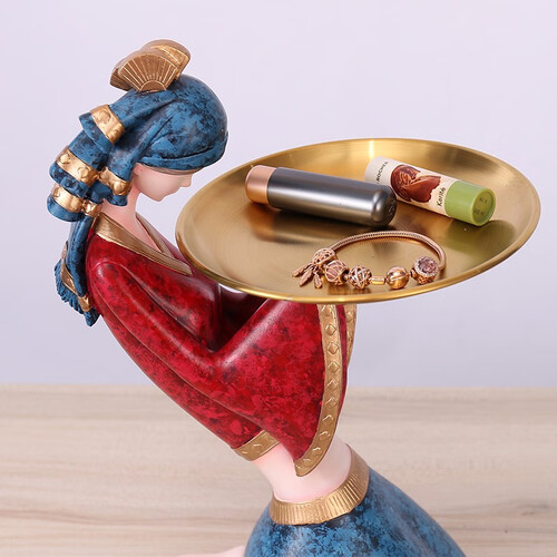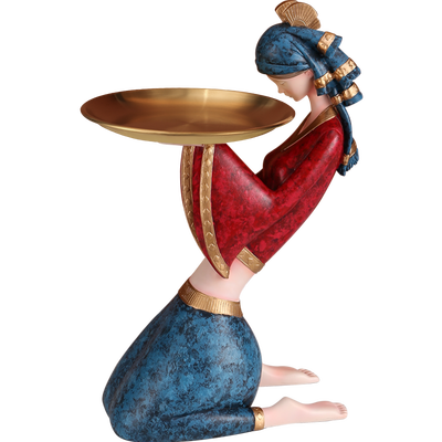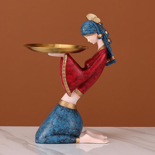 古典少女跪地举着拖盘,显示出对主人的尊重和服从,让您得到感官的享受。拖盘上能摆放小物件,节约空间,让家中整洁。
