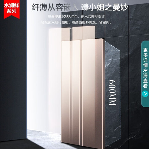 600MM纤薄机身,可嵌入橱柜中,节省空间占用,告别厨房拥挤。7层冷凝管,制冷快速不等待,保留食材本真味道。
