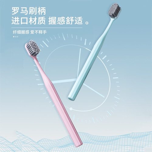 采用泰国进口刷毛,软硬适中,能温和洁净牙齿;且加宽刷头,让牙刷与牙齿接触面积更大,能带走更多牙渍,节省刷牙时间。