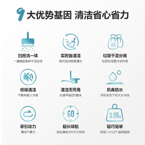高分子柔性大滚刷,深入缝隙清洁污渍,让家中更加干净卫生。60分钟长久续航,轻松清洁全家卫生,不用担心断电苦恼。