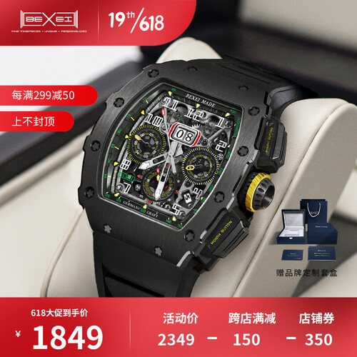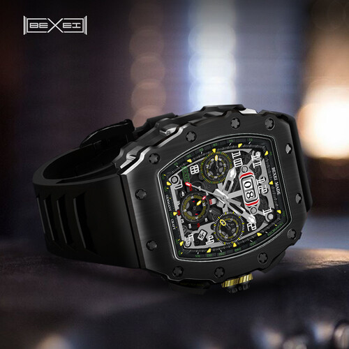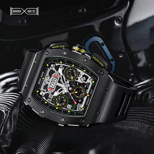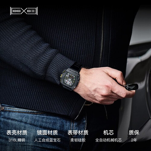 表带采用橡胶材质制作,触感细腻柔和,佩戴更加舒适,经久耐用。搭载机械机芯,动力强劲,续航持久,无需反复上链。