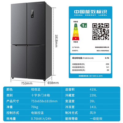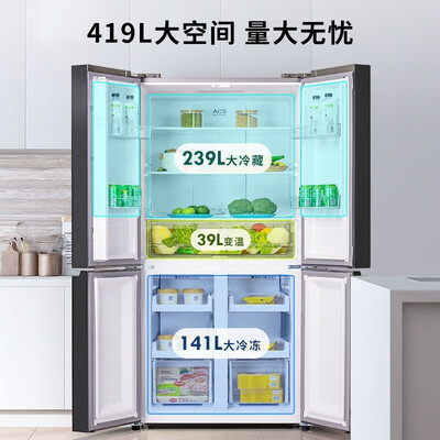 拥有四大制冷模式,可以满足不同食材的保鲜需求,性能可靠。可调节底脚,即使在凹凸不平的地面,依然能保持机身平稳。