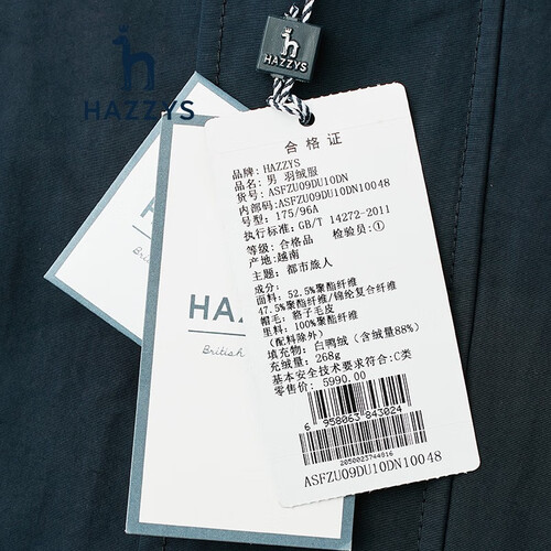 哈吉斯 内里衍缝工艺 羽绒服