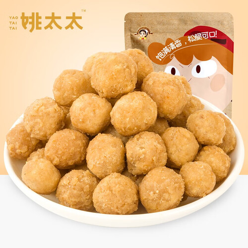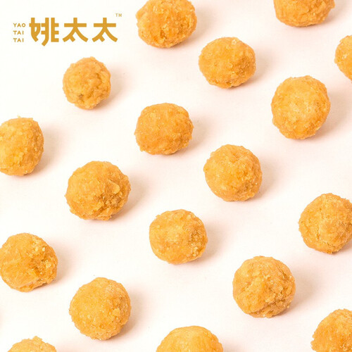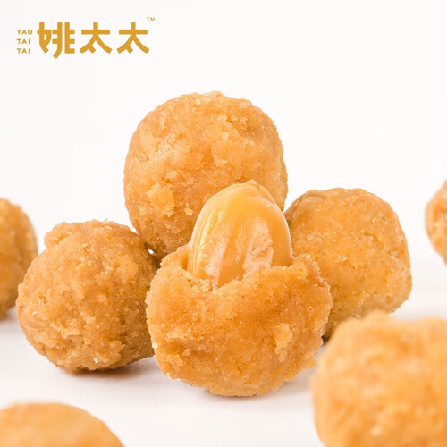 这款姚太太花生小零食,经过复杂配料、严格工艺和多道制作流程精制,色泽金黄,颗粒饱满,口感更酥脆。