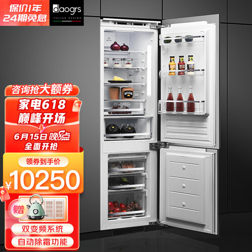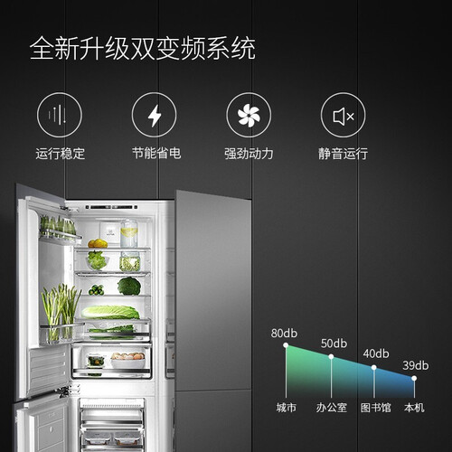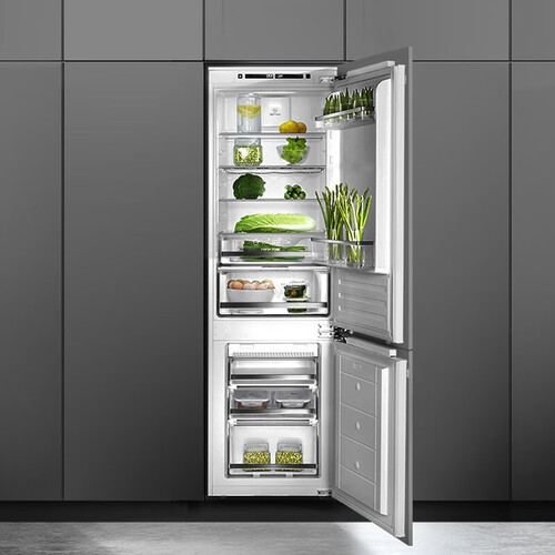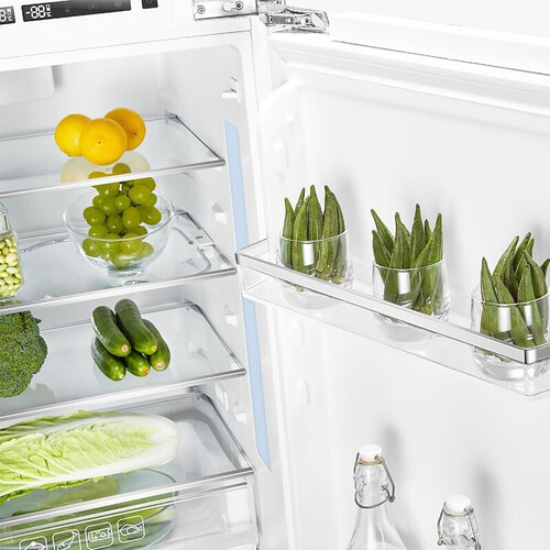 这款冰箱存储设计非常精细,便于收纳不同种类的食物,因此实用性能出众。双开门的设计,便于拿取,设计简洁也大气。
