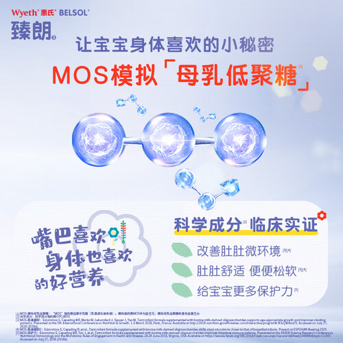 天然来源OPO元素,可促进宝宝的肚肚舒适和消化吸收;MOS模拟母乳低聚糖可以促进有益菌生长。
