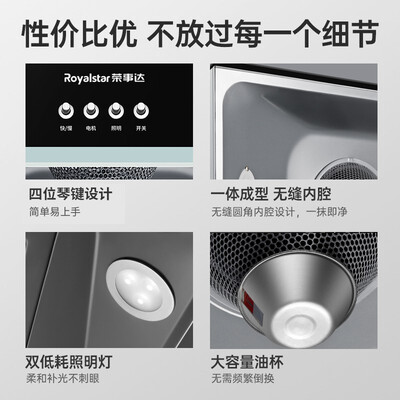 16m³每分钟大吸力,强力瞬吸,爆炒辣椒也不怕。全封闭电机,防水防油,更加经久耐用,稳定运行,降低噪音。