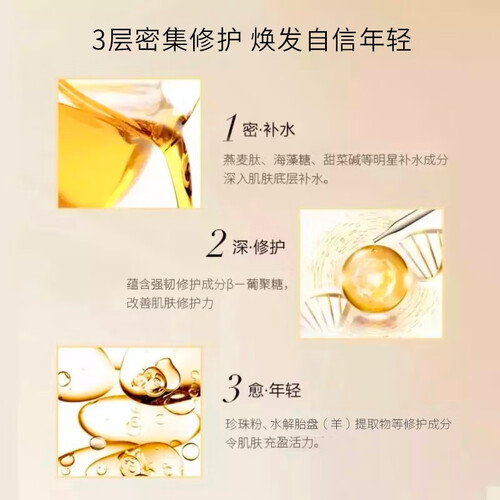 加上水解珍珠精华,有效提亮肤色,解决暗哑的肌肤问题。成分中包含燕麦肽,能够为肌肤深层补水,令肌肤呈现水润光泽感。