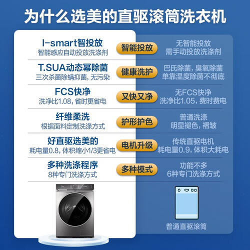 FCS快净技术,能够加快洗涤节拍频率,洗衣又快又干净。采用BLDC变频电机,动力持久不衰退。