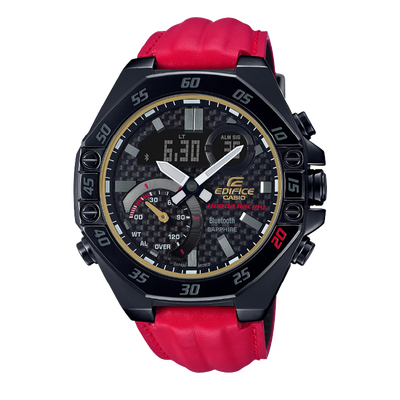 表盘内部设有本田赛车标志,碳纤维材质带来独特质感,大气时尚。手腕水平向内倾斜,即可亮起LED灯,黑暗环境中也可清晰读时。