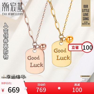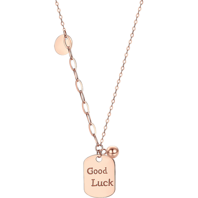 这款项链,刻有goodluck字样,清晰亮眼,凸显细节亮点。选用红18K金材质制成,抗腐防锈,经久耐戴。