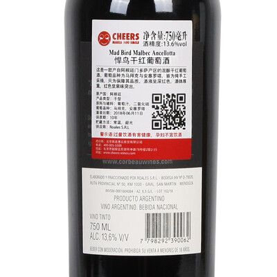 由马尔贝克、安塞罗塔混酿而成,酒体呈现深紫罗兰色,优雅而迷人。圆润的单宁,使口感醇厚,浅尝后,浓郁的浆果气息在口中绽放。