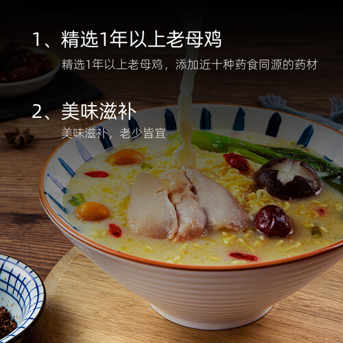 选用生长一年以上老母鸡为原料温火静等6小时,汤汁香醇浓厚。优选高筋面粉,充分吸湿汤汁的营养,吮吸一口,极为满足。