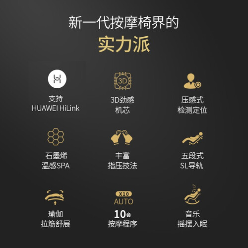 华为智能家居生态合作按摩椅,内置高智能芯片,响应速度更快,按摩更精准。新型石墨烯加热技术,温暖直达深层肌肉,放松更透彻。