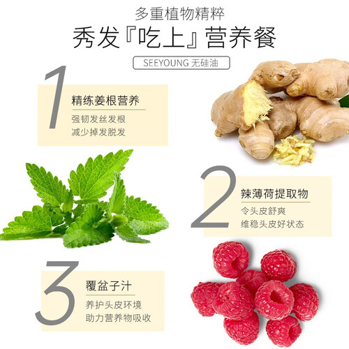 添加了辣薄荷精萃,能够平衡水油,净澈头皮,保持一整天舒爽,主要采用生姜精华,帮助稳固发根,避免脱落。