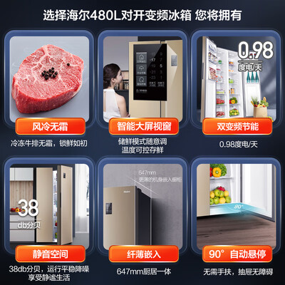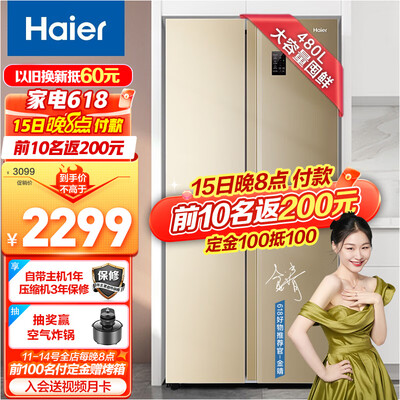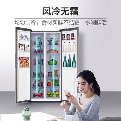 大容量对开门设计,冷藏冷冻分区存储,不混装不串味。结合上金色外观,能轻松融入各种家装风格。